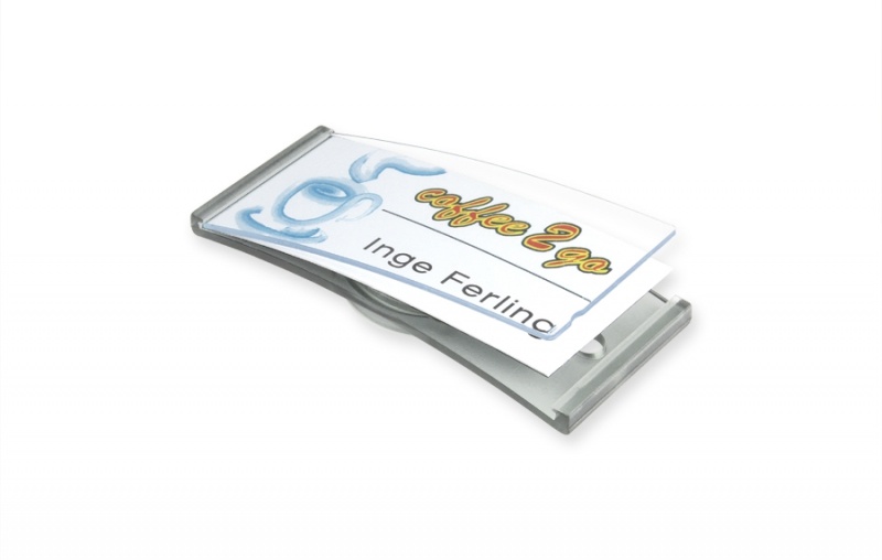 Durch die abgerundete Form passt es sich gut der jeweiligen Optik der getragenen Kleidung an. Lieferbar mit verschiedenen Befestigungen. Größe 70x30mm für Einleger in 55x30mm. Lieferbar in verschiedenen Farben